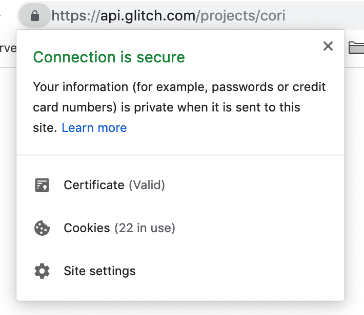 It’s not unheard of for anti-virus or proxies to send requests through a different network path and to interpose certificates that browsers reject. If you load https://api.glitch.com what does the certificate look like?